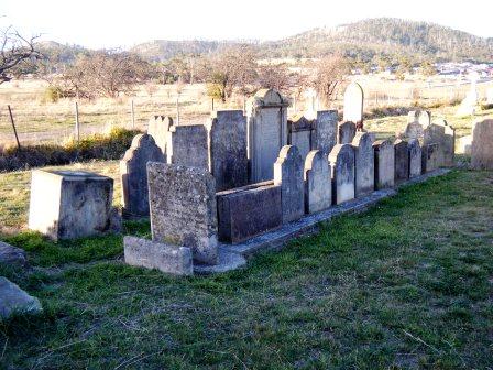 J.P. & J.L. ? A footstone resting with the relocated pioneer stones.
