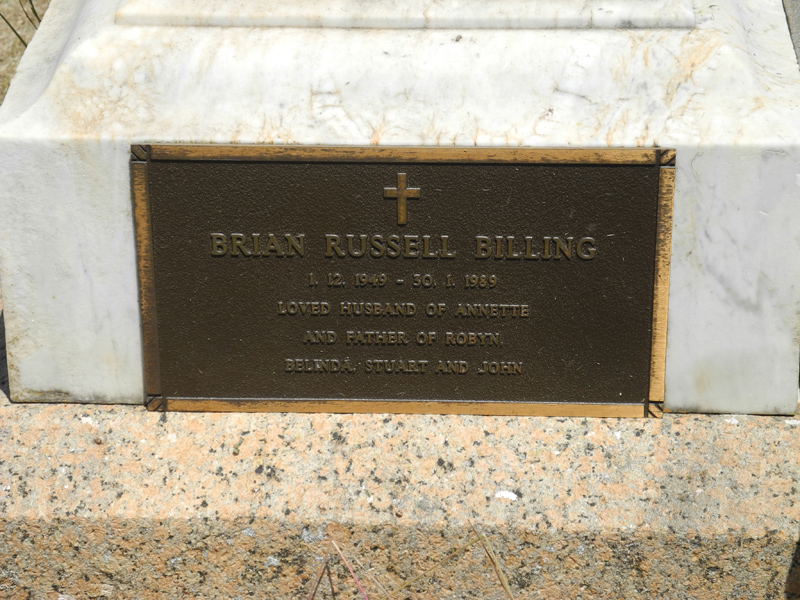 | BILLING | Brian Russell | Photo | 30-1-1989 | Husband of Annette, father of Robyn, Belinda, Stuart & John | |