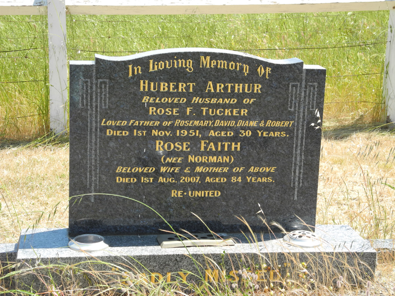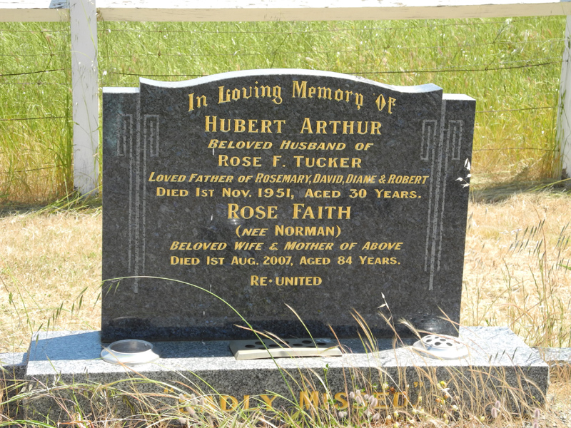 | TUCKER nee Norman | Rose Faith | Photo | 1-8-2007 | 84 y | wife of Hubert Arthur |