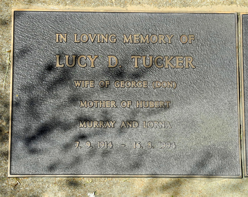 | TUCKER | Lucy D | Photo | 16-8-1994 | Wife of George (Don), mother of Hubert, Murray & Lorna | |