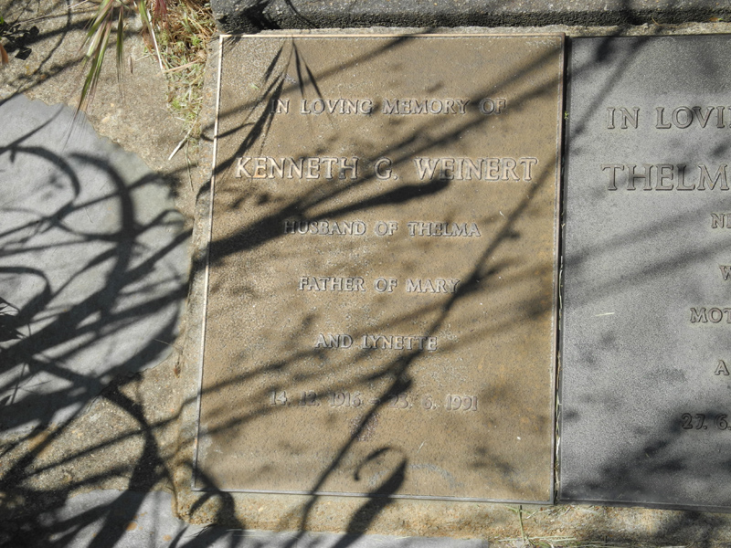 | WEINERT | Kenneth G | Photo | 23-6-1991 | Husband of Thelma, father of Mary & Lynette | |