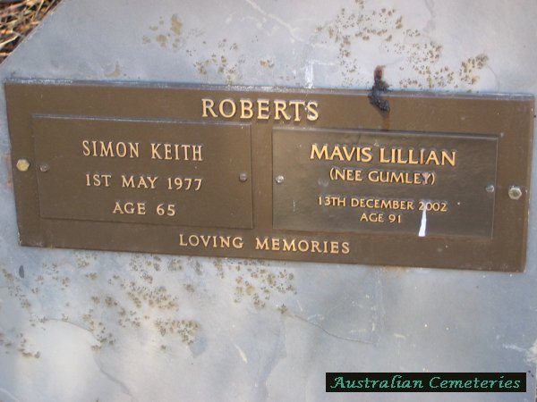 | Roberts | Mavis Lillian | photo | 13.12.2002 | 91 | nee Gumley | |||