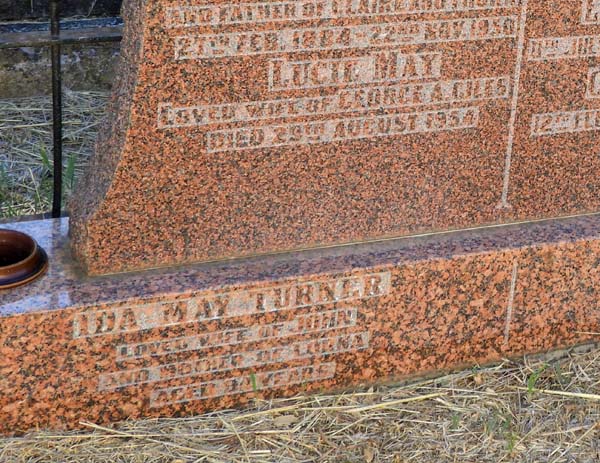 | TURNER | Ida May | photo | photo | 94 y | wife of John, mother of Lorna. BDM 19-7-1967 94 y Ida Rose Turner.Daughter of Stephen Bottrill | |