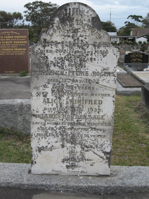 Alice Petrie,buried with daughters Alice E Sage & Fairleigh P Rogers |