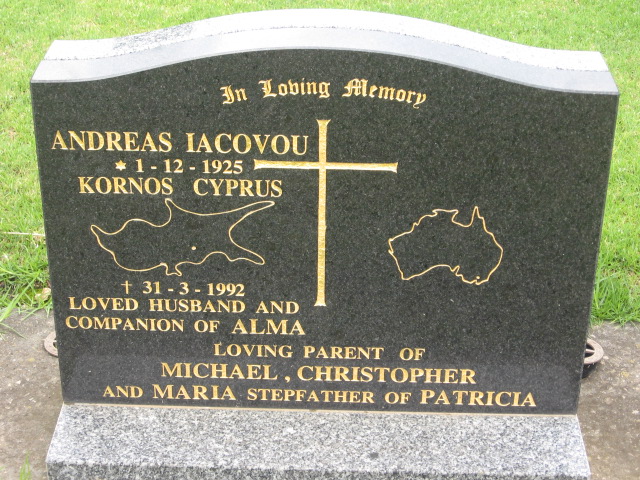 | IACOVOU | Andreas | photo | 1/12/1925 | 31/03/1992 | Alma | Born Kornos Cyprus. | ||