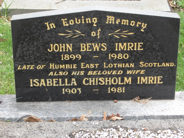 | IMRIE | John Bews | photo | b1899 | d1980 | Isabella Chisholm | Born Lothian Scotland, | ||