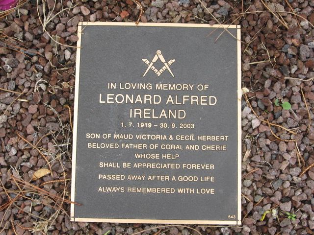 | IRELAND | Leonard Alfred | photo | 1/07/1919 | 30/09/2003 | Par Maud Victoria & Cecil Herbert | |||