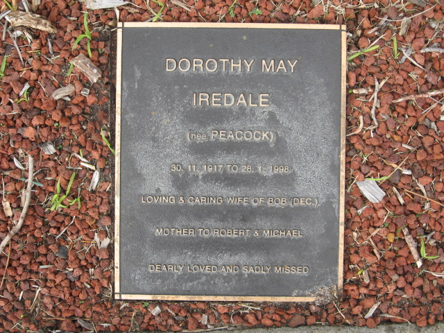 | IREDALE | Dorothy May | photo | 30/11/1917 | 28/01/1998 | Bob (dec) | nee Peacock | ||