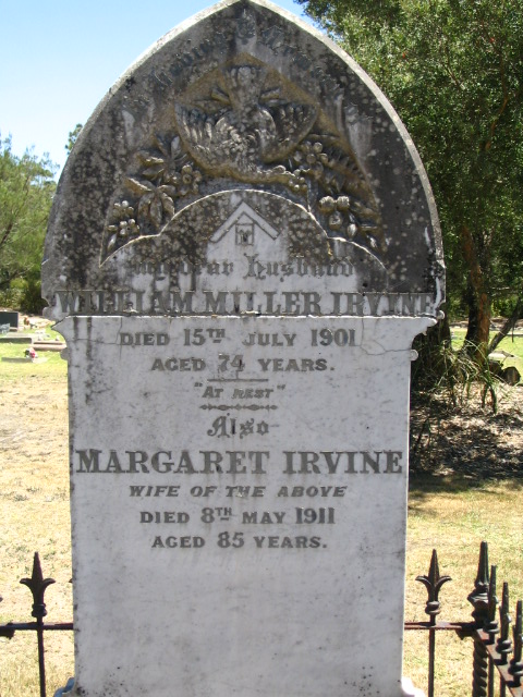 | IRVINE | Maragret | photo | 8/05/1911 | 85 | William M. | nee Fairbairn | ||