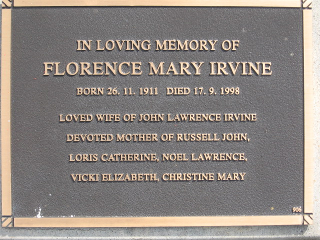 | IRVINE | Florence Mary | photo | 26/11/1911 | 17/09/1998 | John Lawrence | |||