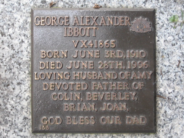 | IBBOTT | George Alexander | photo | 3/06/1910 | 28/06/1996 | Amy M | |||