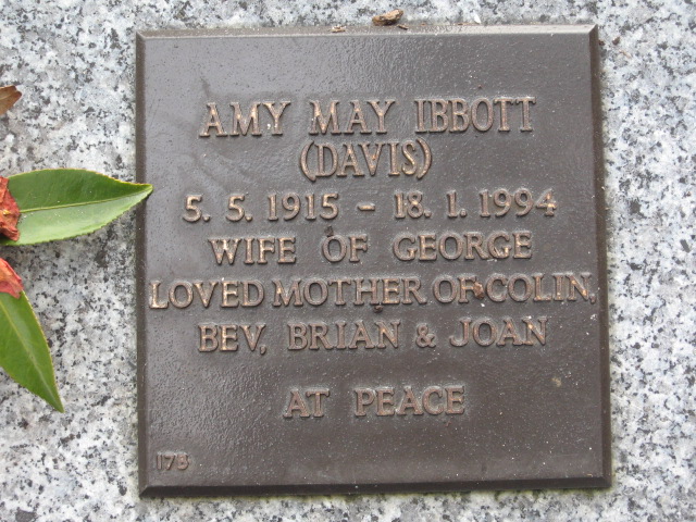 | IBBOTT | Amy May | photo | 5/05/1915 | 18/01/1994 | George A | nee Davis | ||