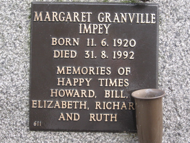 | IMPEY | Margaret Granville | photo | 11/06/1920 | 31/08/1992 | ||||