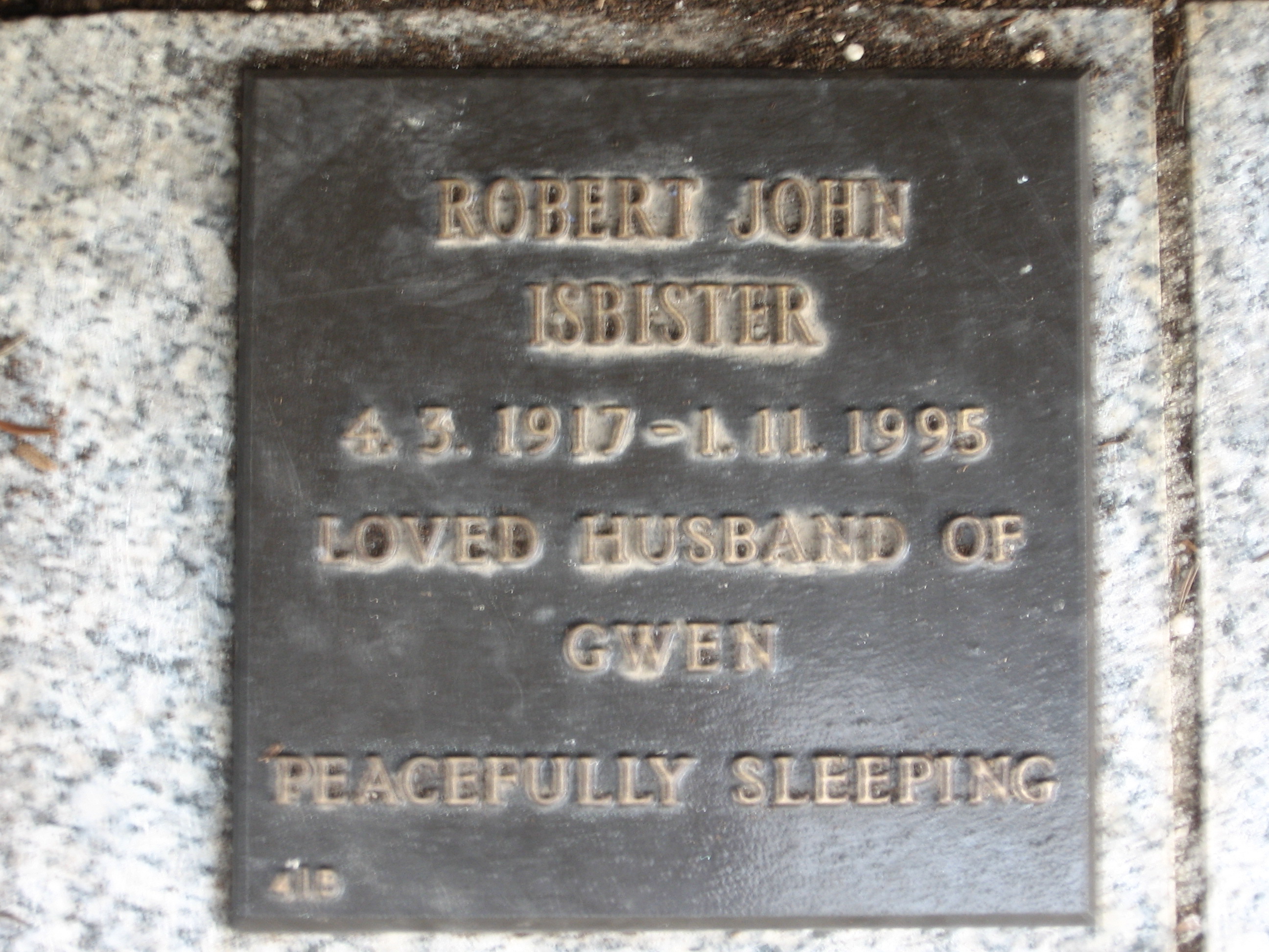 | ISBISTER | Robert John | photo | 4/03/1917 | 1/11/1995 | Gwen | |||