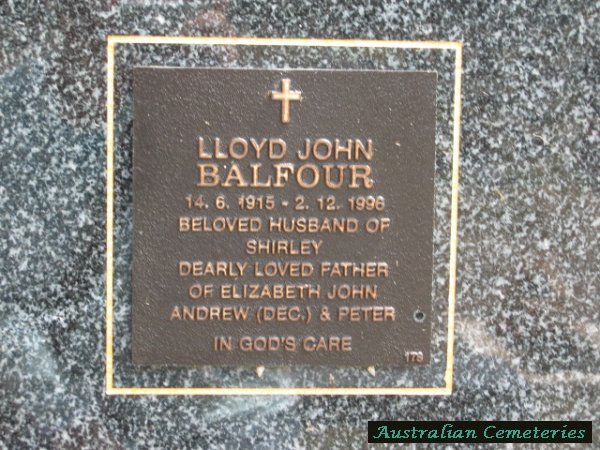 | BALFOUR | Lloyd John | photo | 14/6/1915 | 2/12/1998 | Shirley | father to Elizabeth,John,Andrew (dec),Peter | |