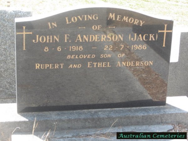 | ANDERSON | John F (Jack) | photo | 8/6/1918 | 22/7/1986 | par Rupert & Ethel Andreson | ||
