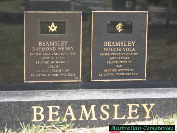 | BEAMSLEY | Raymond Henry | photo | 23/6/1984 | 70 | Dulcie N. | father to Leighton,Leonie,Ross | |