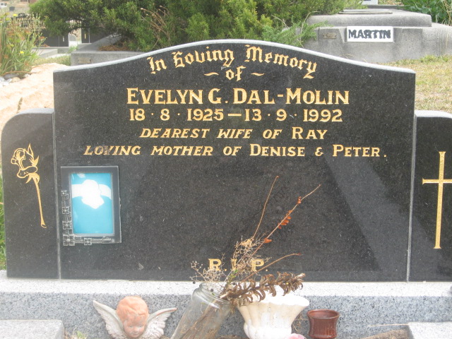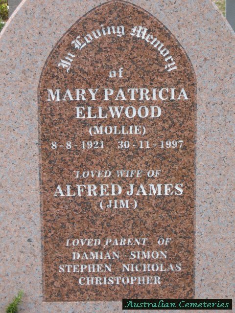 | ELLWOOD | Mary Patricia (Mollie) | photo | 8/8/1921 | 30/11/1997 | Alfred James (Jim) | mother to Damian,Simon,Stephen,Nicholas,Christopher | |