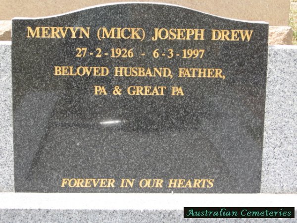 | DREW | Mervyn Joseph (Mick) | photo | 27/2/1926 | 6/3/1997 | |||