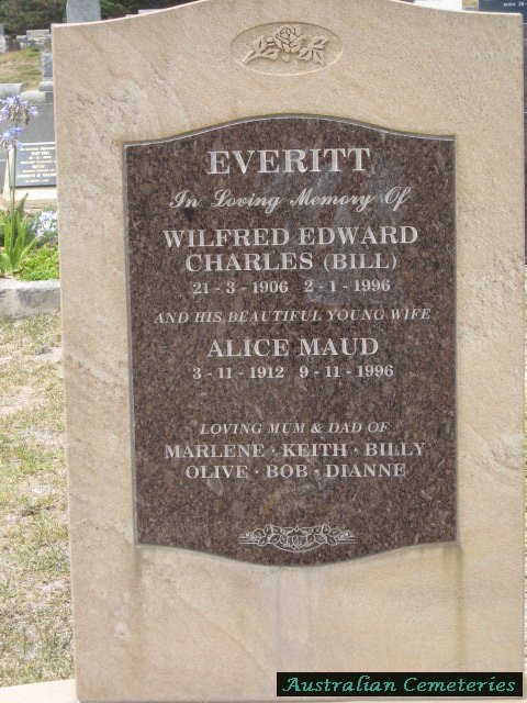 | EVERITT | Wilfred Edward Charles | photo | 21/3/1906 | 2/1/1996 | Alice M | father to Marlene,Keith,Billy,Olive,Bob,Dianne | |