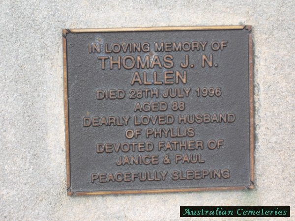 | ALLEN | Thomas J.N. | photo | 28/7/1996 | 88 | Phyllis | father to Janice & Paul | |