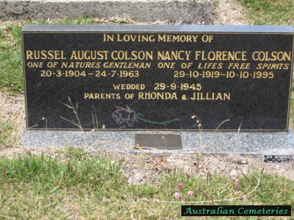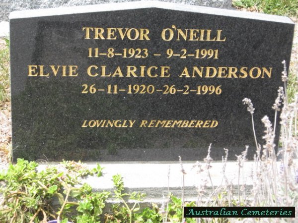 | ANDERSON | Elvie Clarice | photo | 26/11/1920 | 26/2/1996 | buried with Trevor O'Neill | ||