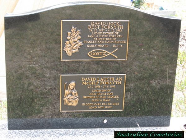 | FORSYTH | David Lauchlan McGilp | photo | 23/3/1976 | 27/6/1995 | par David & Jane,bro to Jane,Stanley,Jason,Isaac | ||