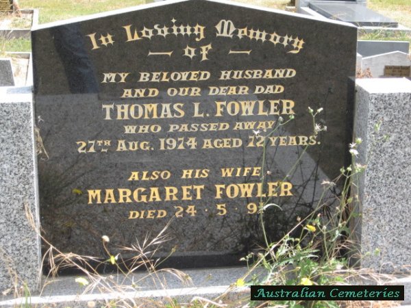 | FOWLER | Thomas L.(Lambert) | photo | 27/8/1974 | 72 | Margaret | par George & Elizabeth Fowler | |