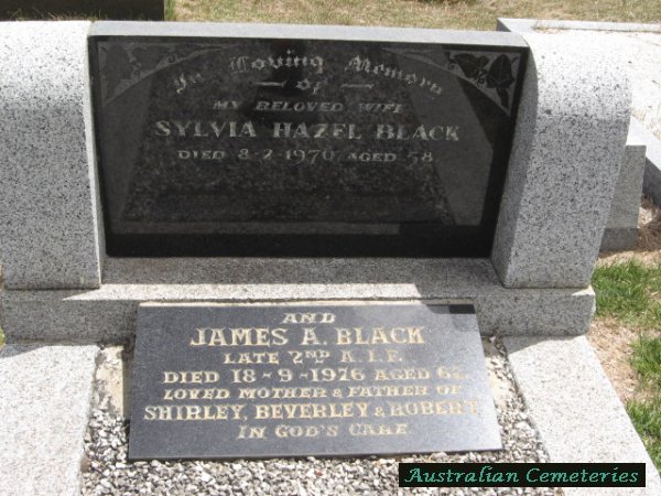 | BLACK | James A (Arthur) | photo | 18/9/1976 | 67 | Sylvia H | par James H & Rose P Black,father to Shirley,Beverley,Robert | |
