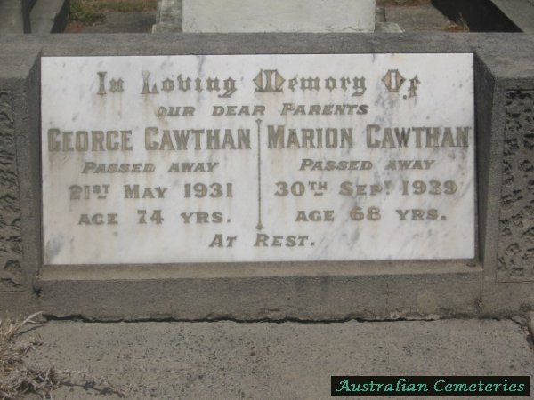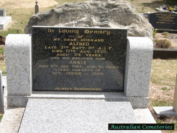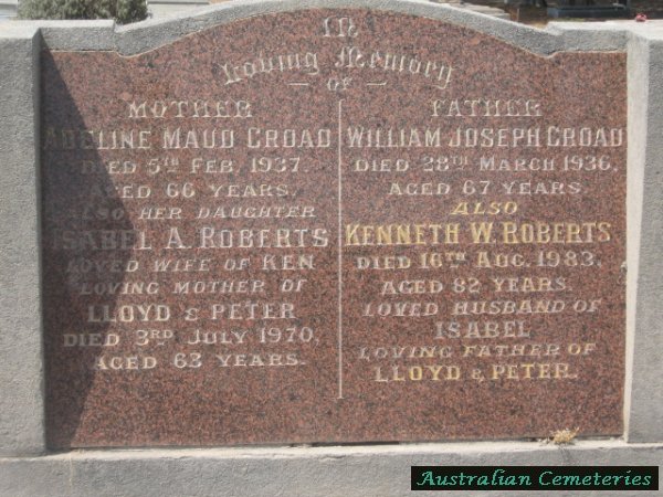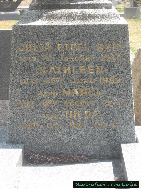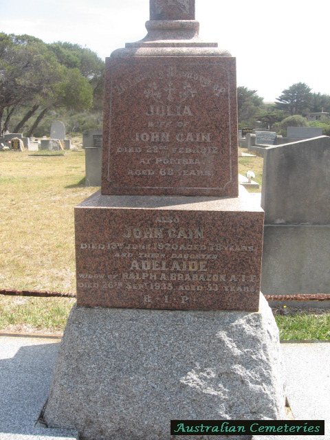 | BRABAZON | Adelaide | photo | 26/9/1935 | 53 | Ralph A. | buried with par Julia & John Cain | |
