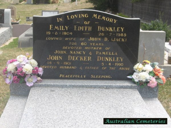 | DUNKLEY | Emily Edith | photo | 19/8/1904 | 26/7/1985 | John D. | mother to John Nancy,Pamella | |