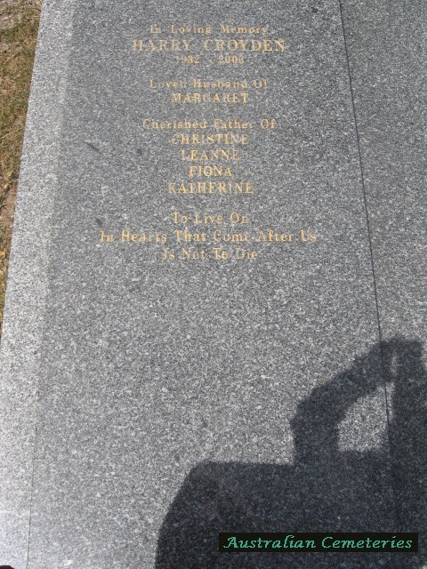 | Surname | Given Name | Photo | Birth | Death | Age | Spouse | Extra information from headstone or death cd |