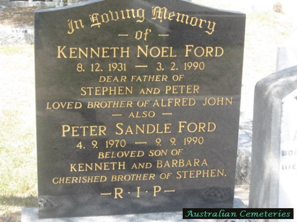 | FORD | Kenneth Noel | photo | 8/12/1931 | 3/2/1990 | father to Stephen & Peter,bro to Alfred John | ||