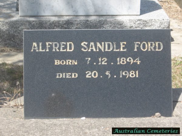 | FORD | Alfred Sandle | photo | 7/12/1894 | 20/5/1981 | 86 | par Alfred S.H. & Jannie Ford | |