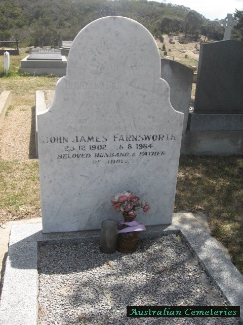 | FARNSWORTH | John James | photo | 23/12/1902 | 8/8/1984 | Irene W. | par John & Catherine,father to Catherine,James (dec)Mary,Nancy | |