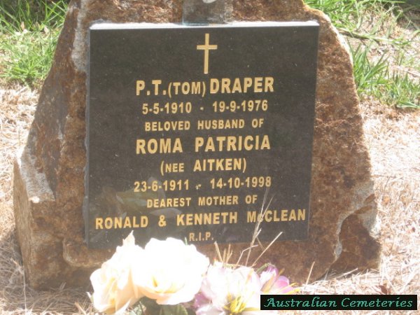 | DRAPER | Roma Patricia | photo | 23/6/1911 | 14/10/1998 | P.T | nee Aitken mother to Ronald & Kenneth McClean | |