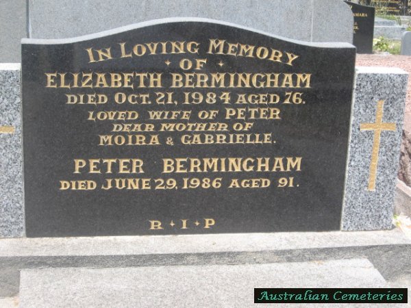 | BERMINGHAM | Peter | photo | 29/6/1986 | 91 | Elizabeth | father to Moira & Gabrielle | |