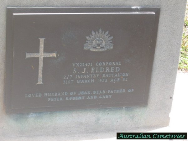 | ELDRED | S.J.( Stanley Joseph) | photo | 31/3/1958 | 52 | Jean Alice | par James & Catherine Eldred,father to Peter,Robert,Gary | |