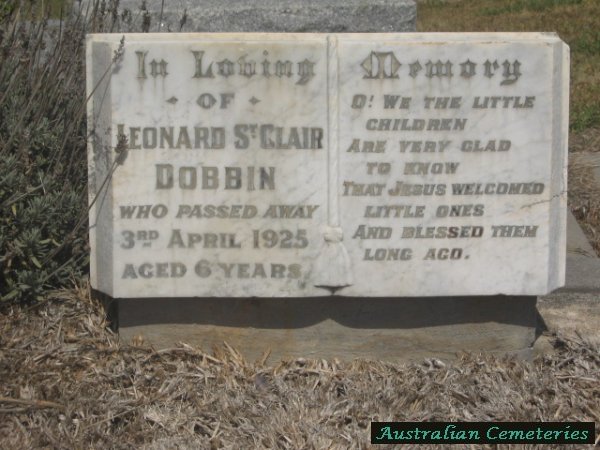 | DOBBIN | Leonard St Clair | photo | 3/4/1925 | 6 | par Hy StClair & Lucy G Dobbin | ||