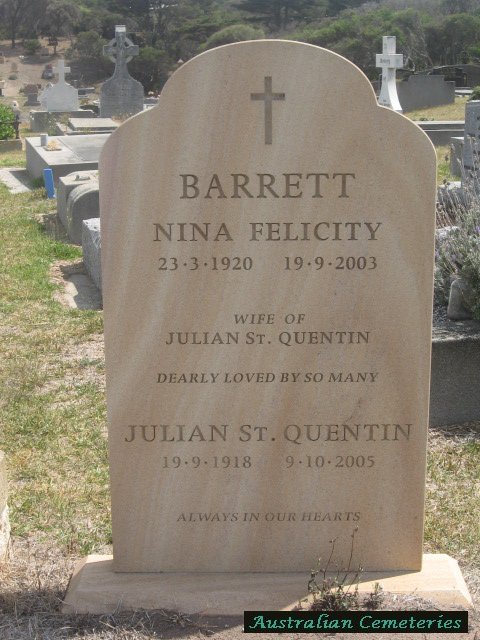| BARRETT | Nina Felicity | photo | 23/3/1920 | 19/9/2003 | Julian St Quentin | ||