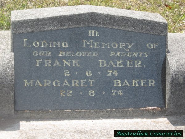 | BAKER | Margaret | photo | 22/01/1895 | 22/8/1974 | born Lancashire UK, died Parkdale, Victoria, c/Frank, Ron, Reg and Ray. | ||