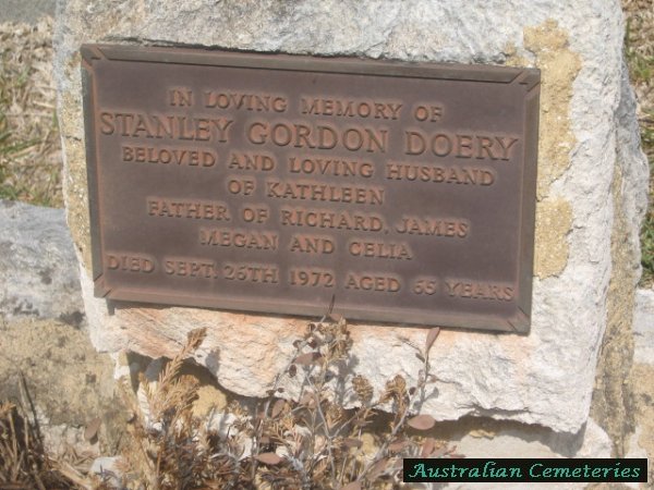 | DOERY | Stanley Gordon | photo | 26/9/1972 | 65 | Kathleen | father to Richard, James,Megan,Celia | |