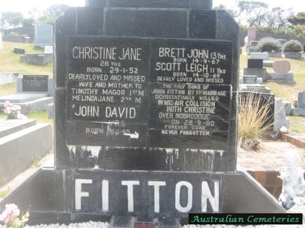 | FITTON | Scott Leigh | photo | 14/10/1969 | 28/9/1980 | 11 | par John David & Kay J Fitton,die in mid air collision with Christine and bro Brett in Moorooduc Vic. | |