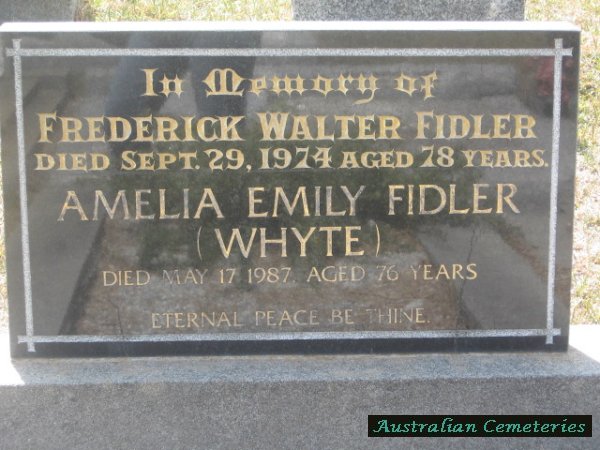 | FIDLER | Amelia Emily | photo | 17/5/1987 | 76 | nee Whyte | ||
