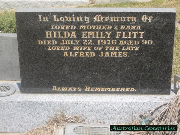| FLITT | Hilda Emily | photo | 22/7/1976 | 90 | Alfred James (dec) | par Edward J & Annie Lewis | |