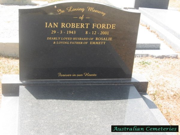 | FORDE | Ian Robert | photo | 29/3/1943 | 8/12/2001 | Rosalie | father to Emmett | |