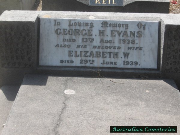 | EVANS | George H,(Henry) | photo | 13/8/1938 | 70 | Elizabeth W. | par William & Wilhemina | |