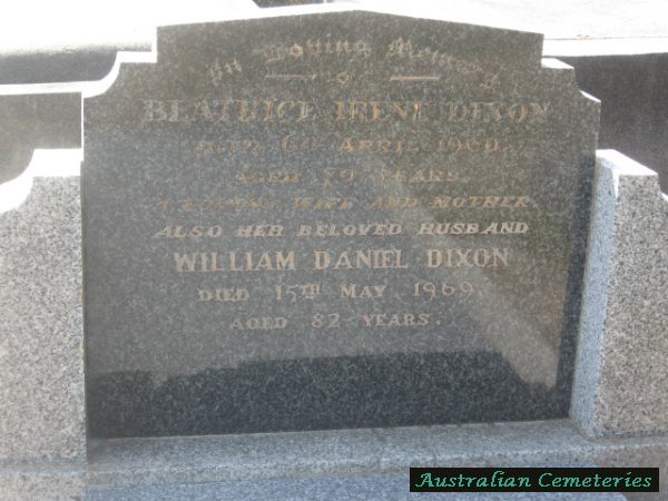 | DIXON | William Daniel | photo | 15/5/1969 | 82 | Beatrice I. | par Edward & Annie Dixon | |