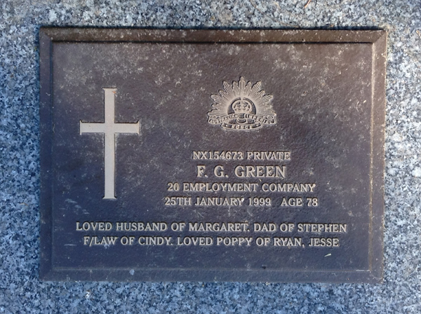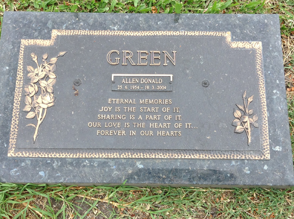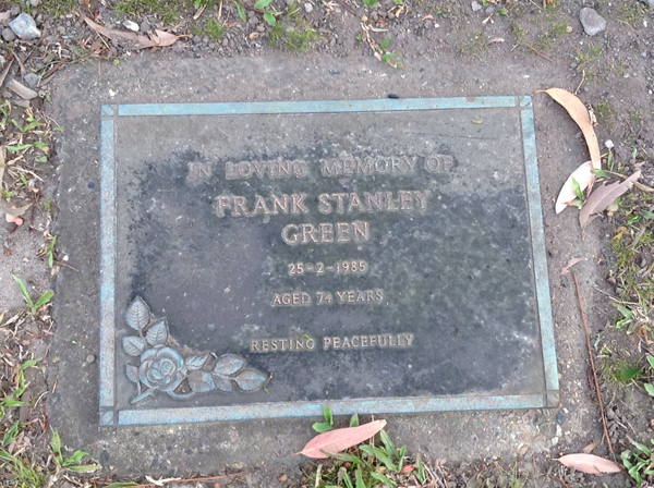 | Green | Frank Stanley | photo | 25/02/1985 | h/o Lyn, f/o Rachel, son, brother, uncle & friend | |||