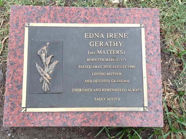 | Gerathy | Edna Irene | photo | 5/03/1921 | 20/08/1998 | nee Matters | ||